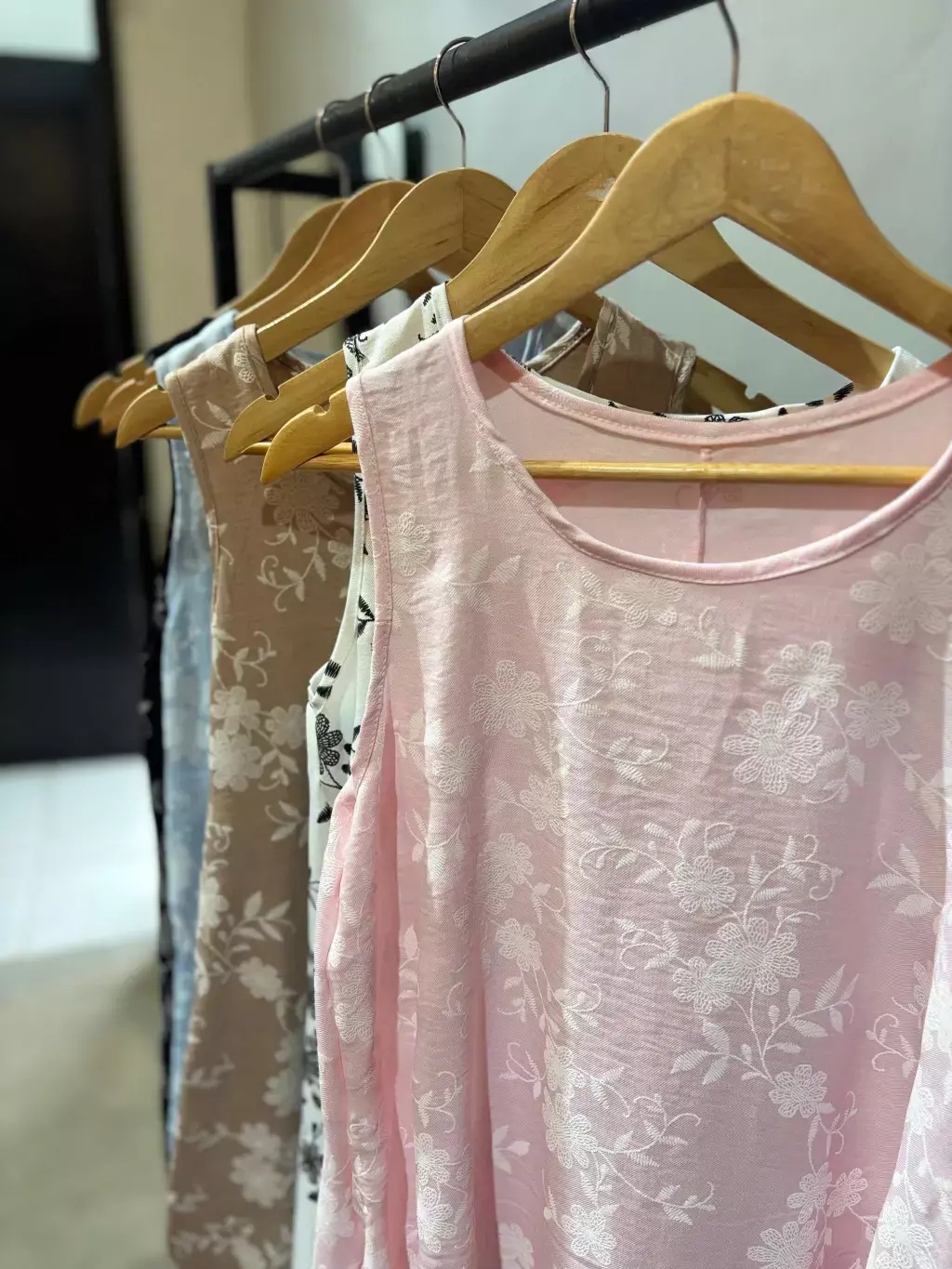 Rosa, blanco, camel, celeste y negro